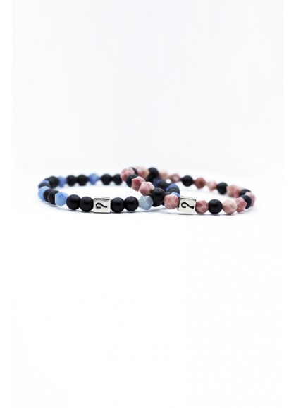 Pack conformado por 2 pulseras elásticas, elaboradas con piedras sodalita, onix y ópalo rosa.