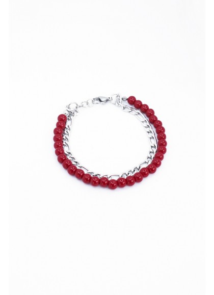 Pulsera elástica, elaborada con piedras ágata rojas de 6 mm y dije de zamac.