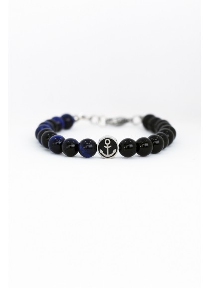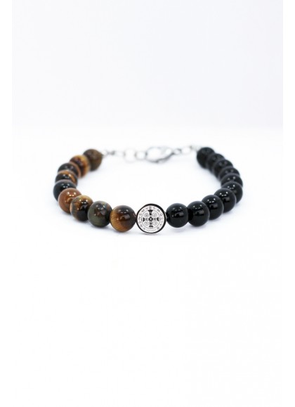 Pulsera elaborada con piedras naturales (ojo de tigre y ónix), broche y dije de acero inoxidable. Talla S: Da hasta muñeca de 17.5 cmTalla M (18 cm)Talla L (20 cm