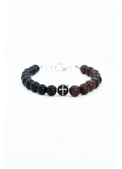 Pulsera elaborada con piedras naturales (ojo de tigre y ónix), broche y dije de acero inoxidable.Talla S: Da hasta muñeca de 17.5 cm