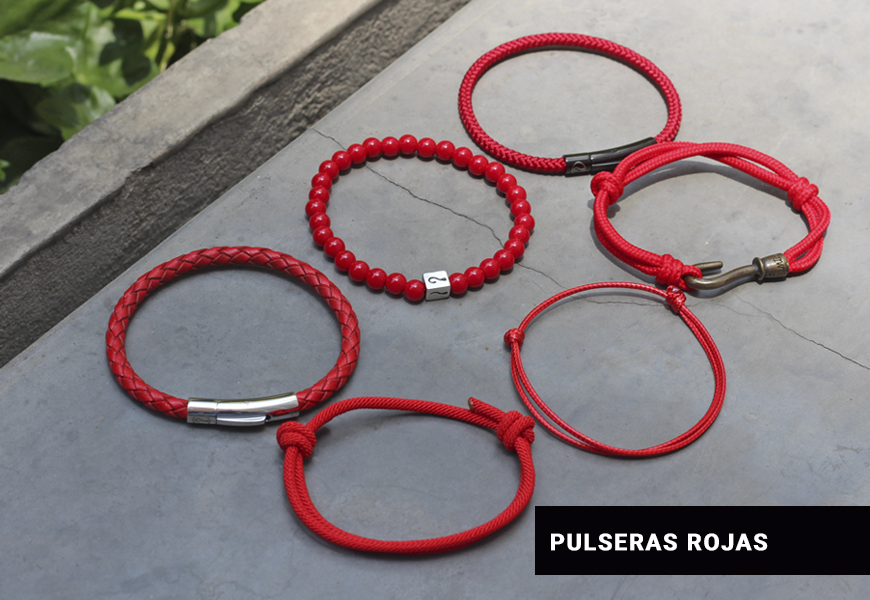 Pack conformado por 1 pulsera Ganzio Bracelet rojo + 1 pulsera de piedras cornalina mini (6 mm) + 1 pulsera Vasco regulable rojo.