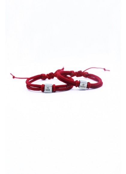 Pack conformado por dos pulseras regulables elaboradas con cuerda de milan de gran resistencia y dijes de acero inoxidable. También pueden ser ambas Mr o ambas Mrs.