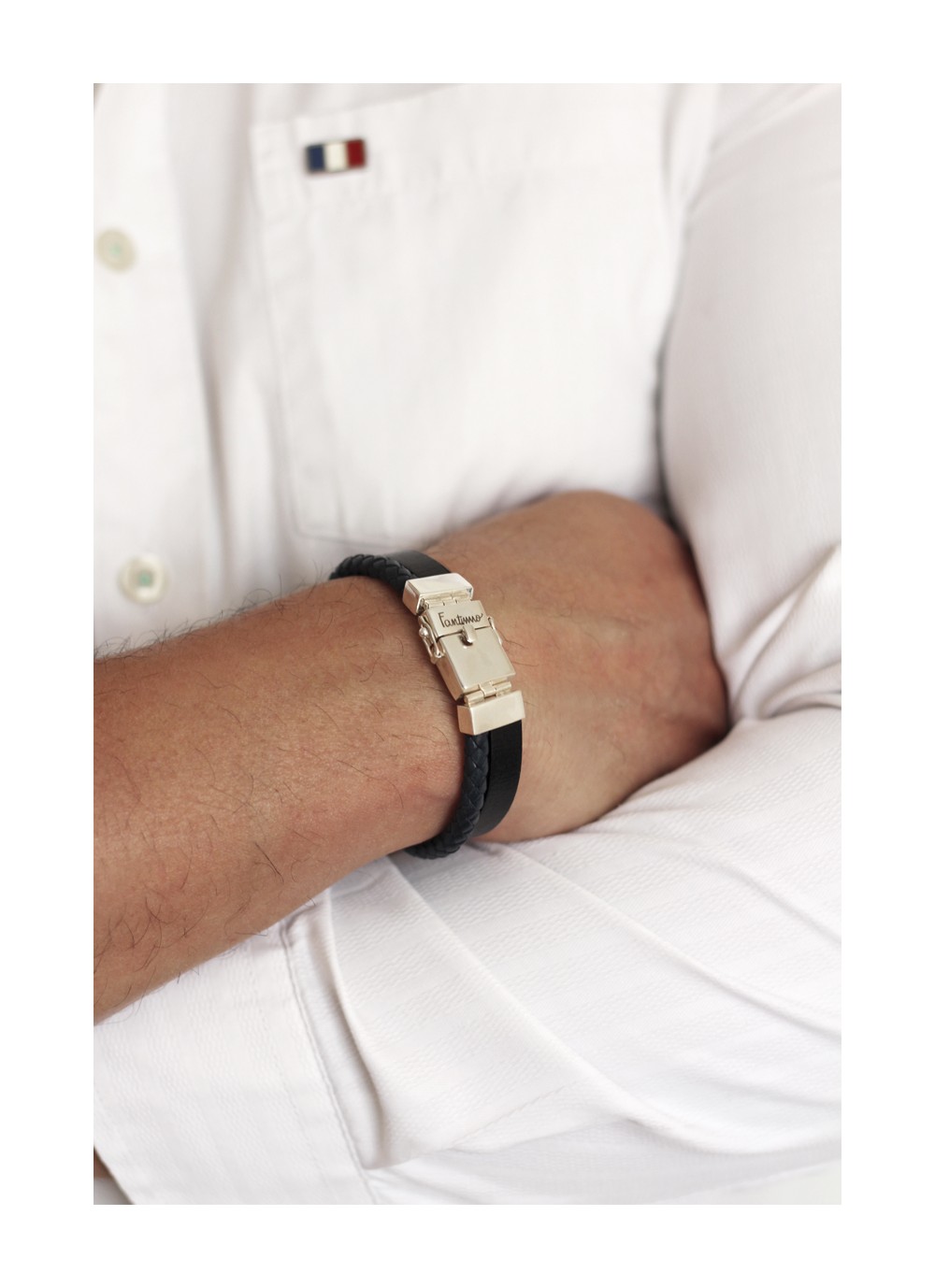 Pulsera elaborada con cuero genuino y broche de plata 950.